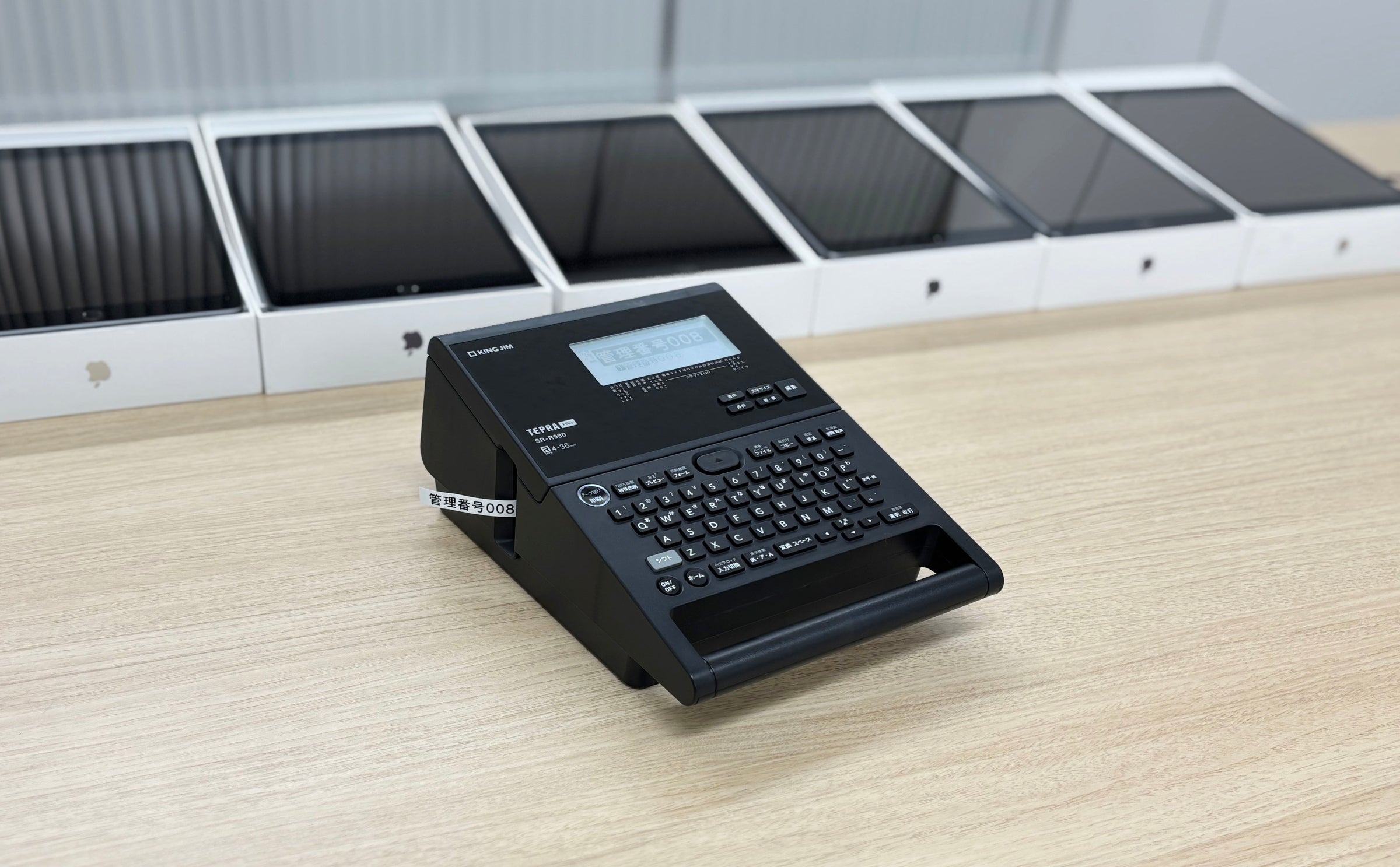 当社のモバイル管理業務の一つであるキッティングでは、モバイル端末に管理用ラベルを貼る作業も多く行われます。本記事では、そのラベル作成に使用しているラベルライターをご紹介します。実際に業務で使用している当社キッティングチームの実体験をもとに、使い勝手やメリットをお伝えします。キッティングでは一度に大量のラベルを作成する場面が多く、スピードも重要です。文字作成、印刷、カット、貼り付けといった工程をいかにスムーズに進めるかがポイントになります。そこで活躍するのが、ラベルライター『テプラ』のフラッグシップモデル 「キングジム「テプラ」PRO SR-R980」 。キッティング現場で実感した、効率的で便利な機能をご紹介します。