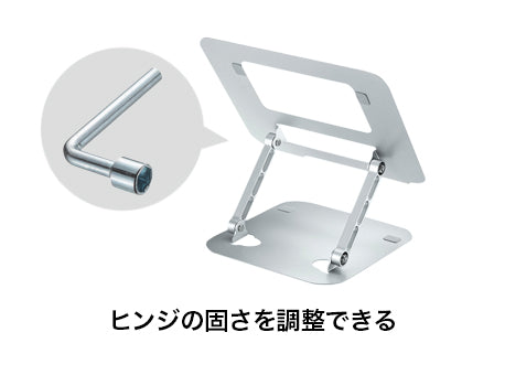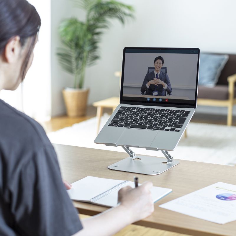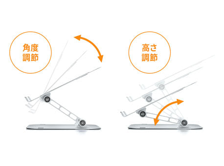 無段階で高さ・角度を調整できる折りたたみ対応のノートパソコン用スタンドです。